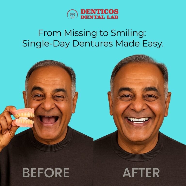 dedicated to empowering dentists and clinics with unmatched precision, quality, and speed. With 11+ years of expertise and strong partnerships with over 100 dental clinics, we specialize in crafting world-class prosthetics, including Single Day Dentures, crowns, bridges, and implant-supported restorations. Our state-of-the-art lab blends cutting-edge technology with expert craftsmanship to deliver accurate, durable, and reliable dental solutions that enhance patient satisfaction. At Denticos, we understand that time and efficiency matter—for both dentists and patients—which is why we ensure faster turnarounds without compromising on quality. With 10,000+ happy smiles delivered and a 4.9-star rating, Denticos Dental Lab is your dependable B2B partner, helping dental professionals achieve excellence, consistency, and value in every product.